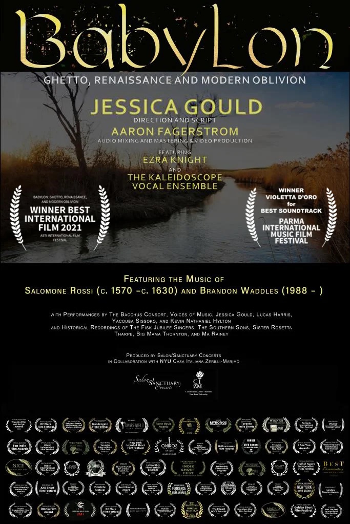 Babylon Writer and Director Jessica Gould enjoys a multifaceted career as writer, soprano, artistic director, Italian translator, and filmmaker. Her dizzying laurels list for Babylon include the Violetta d’Oro Prize from the Parma International Music Film Festival for Best Soundtrack and Best Foreign Film from the Asti Film Festival. Her writing has been awarded Best Original Script from the London International Monthly Film Festival, and she has been named Best First Time Director by the Silk Road Festival Cannes, 1st Monthly Film Festival Belgrade, and Dreamer's Film Festival Bucharest. Other awards, including prizes for Best History Film, Best Sound Design, Best Cinematography, Best Short Documentary, Best Social Justice Film and Best Black Lives Matter Film, have been awarded across the globe, from film festivals in Atlanta, Belgrade, Epirus, Istanbul, La Jolla, Los Angeles, Milan, Mykonos, Naples, New York, Palermo, Paris, Rome, Tokyo, and Toronto, among others.