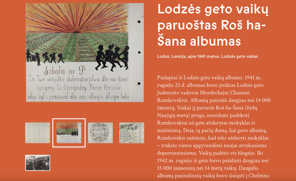 The online museum is available free of charge to the global public at museum.yivo.org. The Lithuanian translation is available at https://museum.yivo.org/?lang=lt.