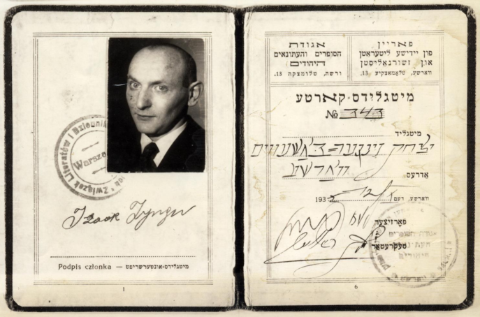 Union of Jewish Writers and Journalists of Warsaw membership card of Isaac Bashevis Singer (1904–1991), courtesy of YIVO Archives