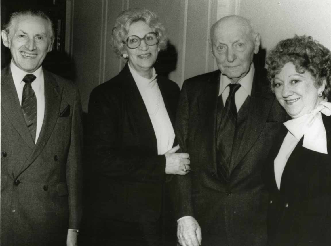 Nina and David Rogow with Isaac Bashevis Singer and Yiddish actress Rita Karin-Karpinovitch at a