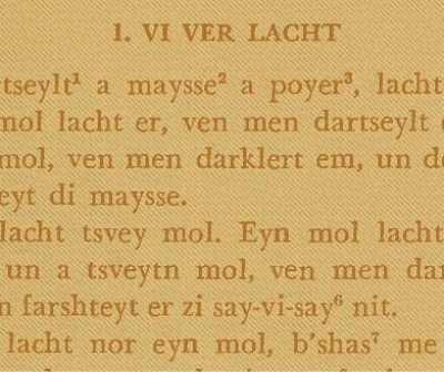 Conducted in Yiddish, this course will read and study the history of Royte pomerantsn, the century-old collection of Yiddish jokes compiled by Immanuel Olshvanger. Towards the eternal attempt to characterize Yiddish humor, the course will discuss the motifs that are joked about and Olshvanger's theory of what is essential to the Yiddish joke.