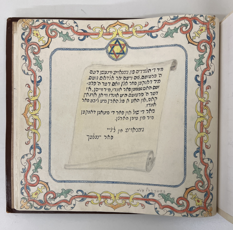 When Turski visited YIVO in 2016, he found his own signature in the Łódź Ghetto “Book of the Children,” a hand-painted book given to Judenrat head Mordechai Chaim Rumkowski as a gift for Rosh Hashanah of 1942. The book contains the signature of every school child in the ghetto—nearly 14,000 in total. Approximately 200 children survived. Upon finding his own signature in the book, he nearly fainted when he saw that the signature of his best friend, Dawid Sierakowiak was next to his. Sierakowiak, sadly, did not survive the war.